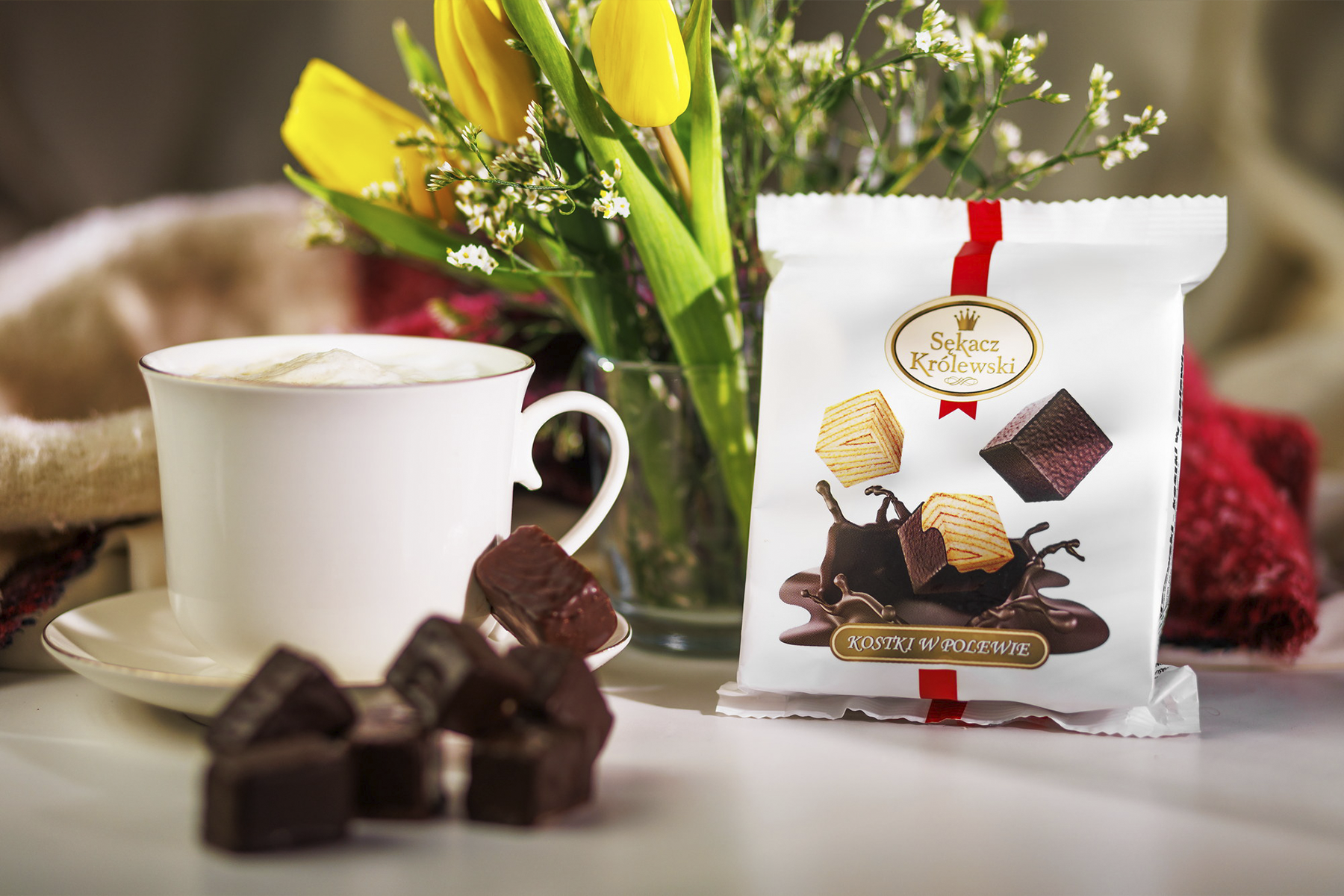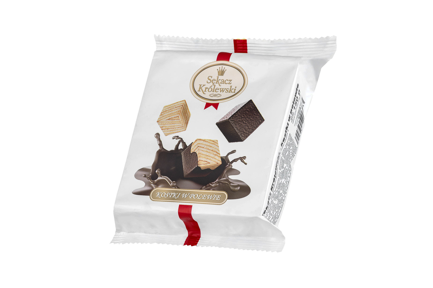 Sękacz Królewski – kostki w polewie 150 g firmy SECPOL to sękacz pokrojony w małe kostki, oblany polewą kakaową, produkt o łącznej masie netto 150 g, co stanowi optymalną porcję do zaserwowania go na poczęstunek podczas spotkań towarzyskich lub rodzinnych. Doskonale sprawdzi się jako efektowna przekąska na wszelkiego rodzaju przyjęciach i uroczystościach. Zapakowany jest w ozdobną folię i praktyczną tackę, co sprawia, że to nie tylko pyszny deser, ale również gotowy do podarowania w prezencie, elegancki słodki upominek.